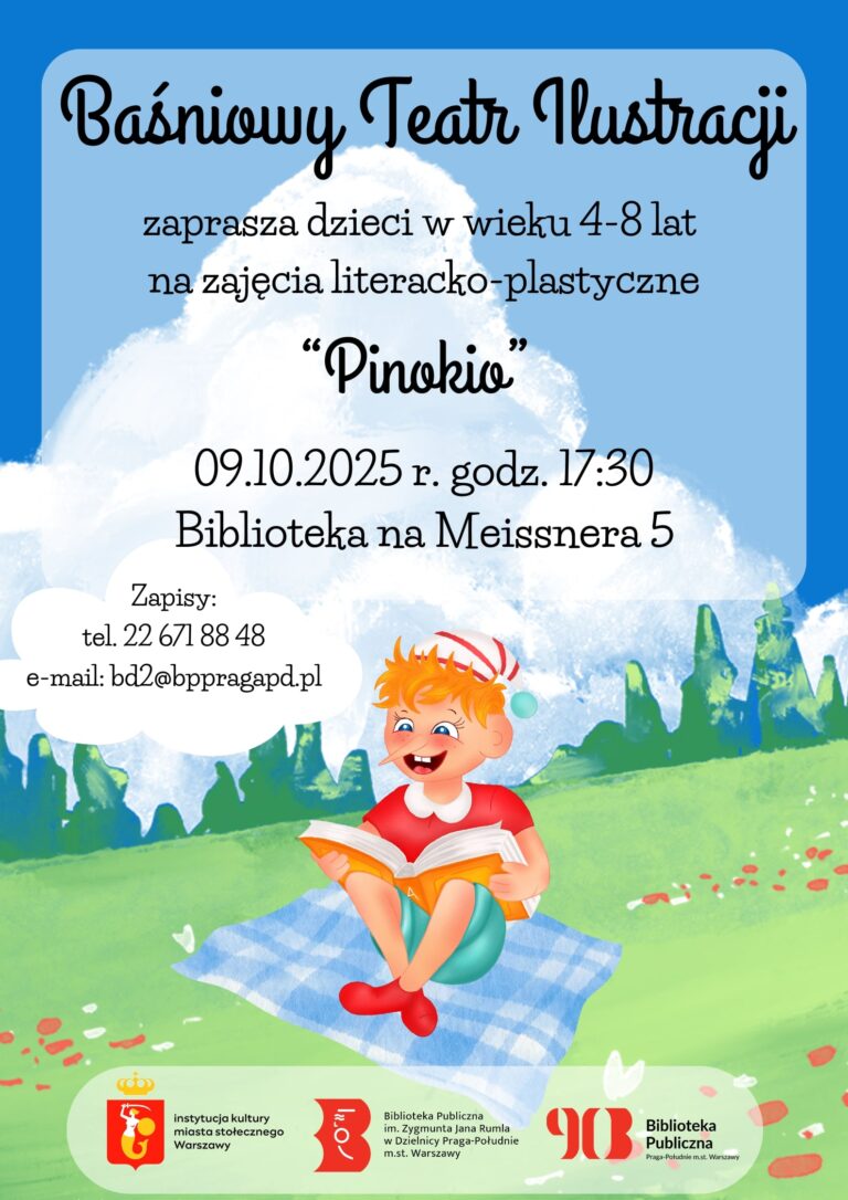 Młodych miłośników teatru i sztuki zapraszamy na cykliczne spotkanie Baśniowego Teatru Ilustracji. Podczas spotkania 9 października wysłuchamy opowieści „Pinokio”. Spotkanie przeznaczone jest dla dzieci w wieku 4-8 lat z opiekunami.
