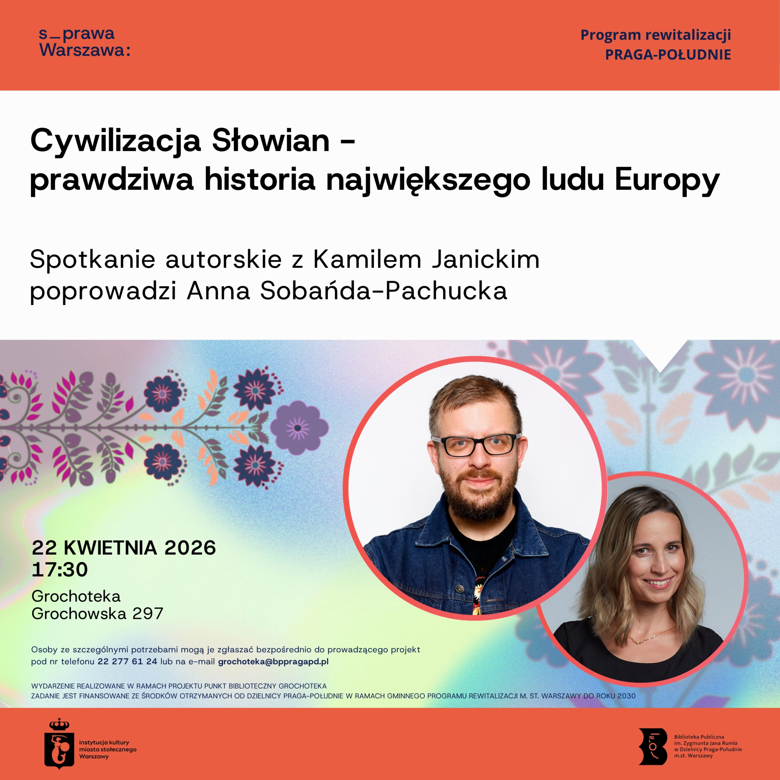 Wydarzenie realizowane w ramach projektu Punkt biblioteczny „Grochoteka”. Zadanie jest finansowane ze środków otrzymanych od Dzielnicy Praga-Południe w ramach Gminnego Programu Rewitalizacji m.st. Warszawy do roku 2030.