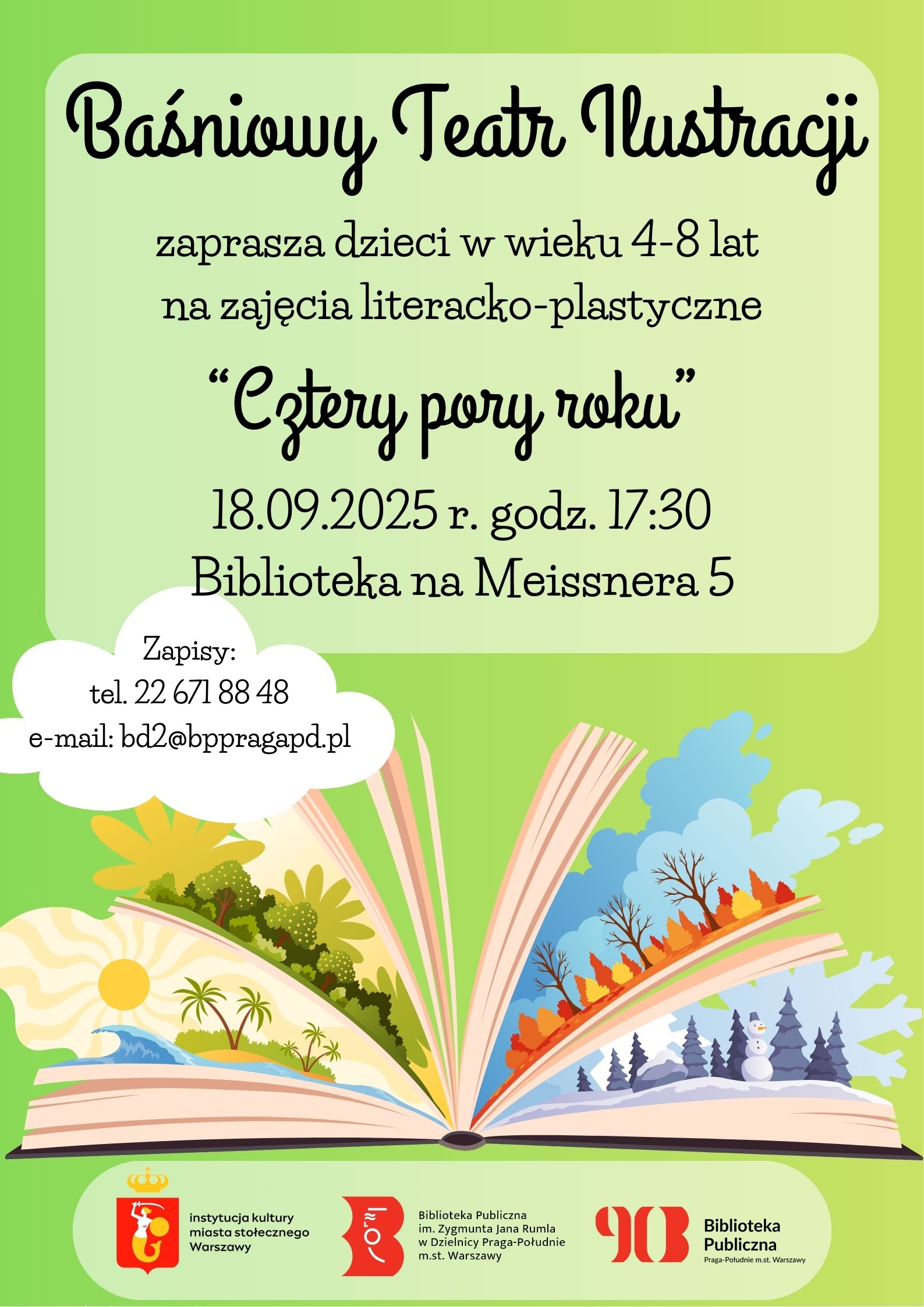 Czy można połączyć teatr kamishibai z literaturą i warsztatami plastycznymi? Oczywiście, że tak, a dowodzą tego zajęcia pt. „Baśniowy Teatr Ilustracji”. Dzieci w wieku 4-8 lat zaprasza Biblioteka dla Dzieci i Młodzieży nr 2, mieszcząca się przy ul. Meissnera 5. We czwartek 25 września tematem zajęć będą „Cztery pory roku”.