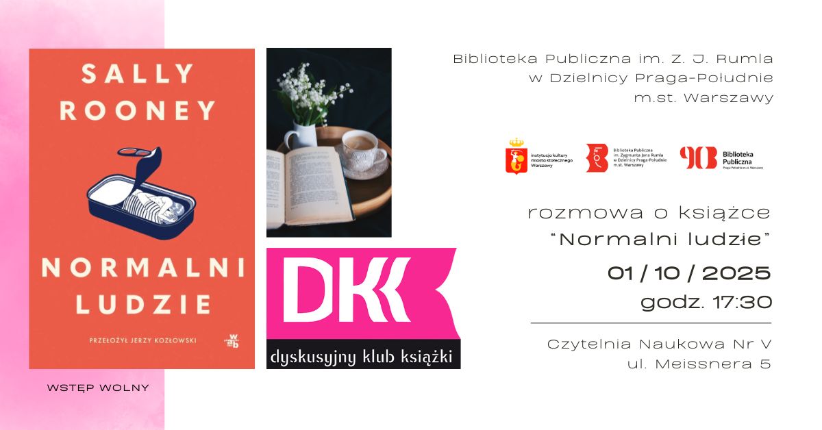 Miłośników dobrych książek i rozmowy o nich zapraszamy do udziału w comiesięcznych spotkaniach Dyskusyjnego Klubu Książki. Najbliższe odbędzie się w środę 1 października o godz. 17:30. tematem dyskusji będzie książka pt. „Normalni ludzie”.