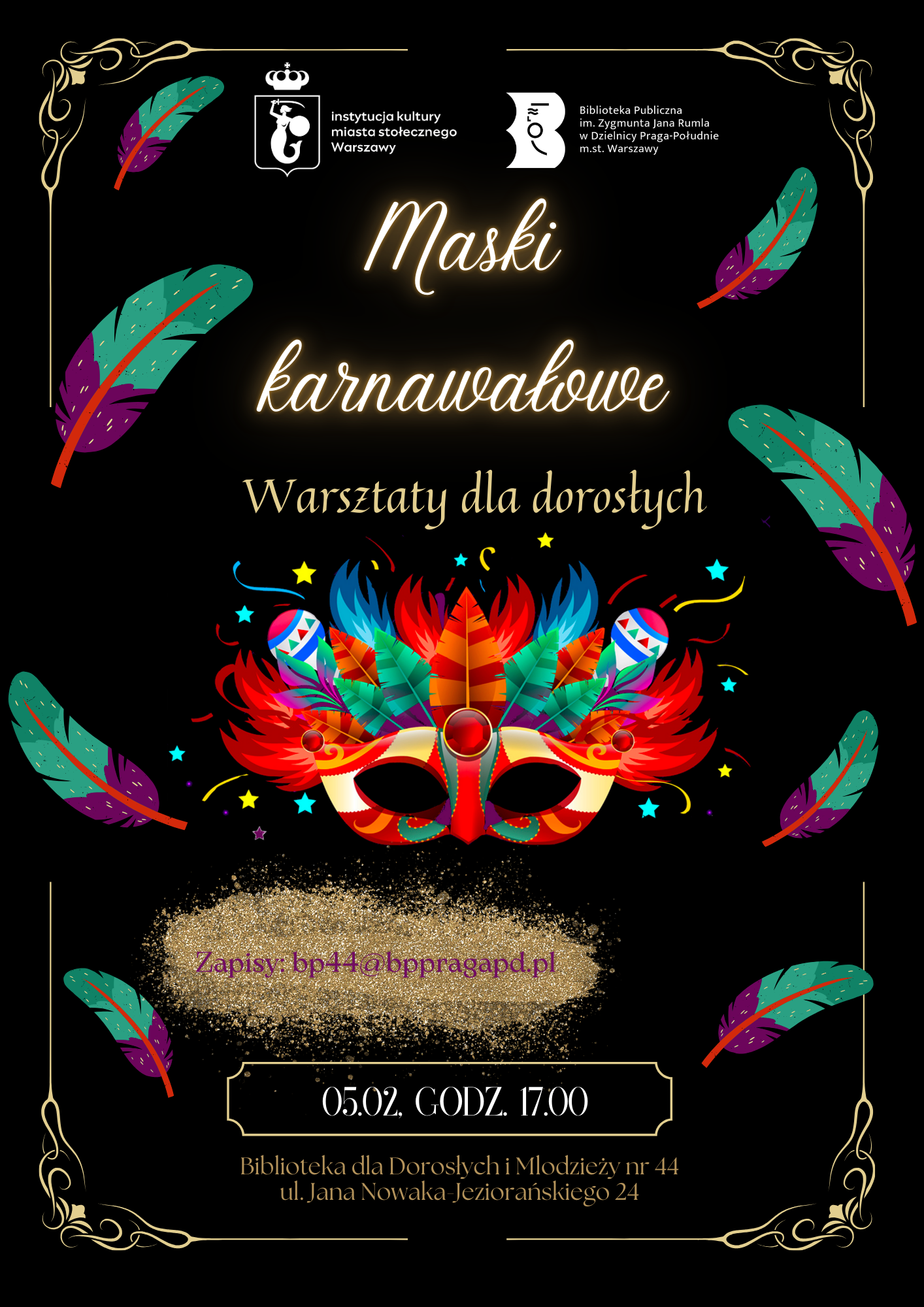 Jeśli chcesz wyróżnić się podczas karnawałowego balu? Koniecznie weź udział w warsztatach, podczas których powstaną oryginalne atrybuty niezbędne podczas każdej karnawałowej zabawy! Do wspólnego kreatywnego działania zaprasza Wypożyczalnia dla Dorosłych i Młodzieży nr 44, przy ul. Nowaka-Jeziorańskiego 24.