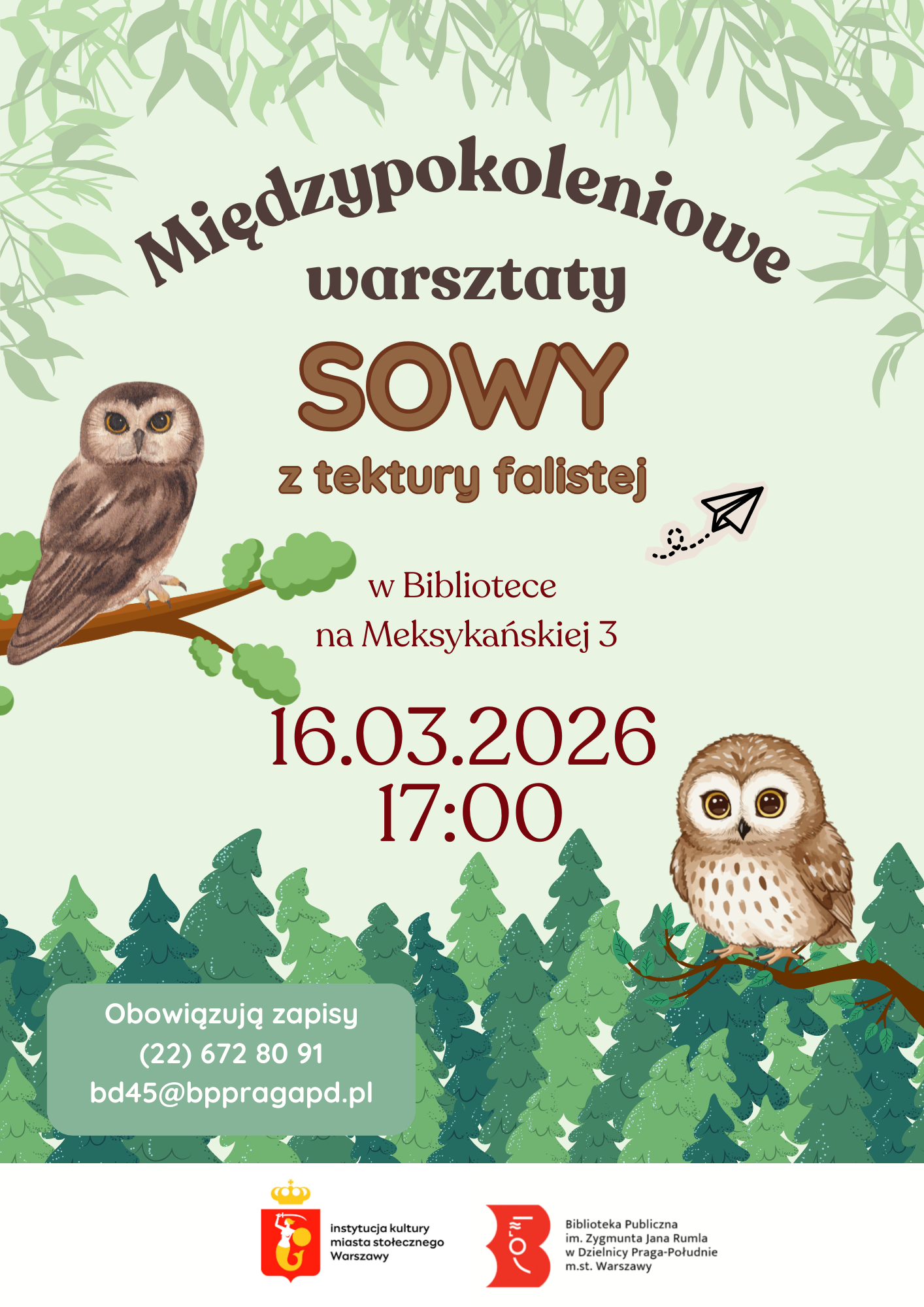 Na warsztaty obowiązują zapisy: tel. 22 672 80 91 lub e-mail: bd45@bppragapd.pl