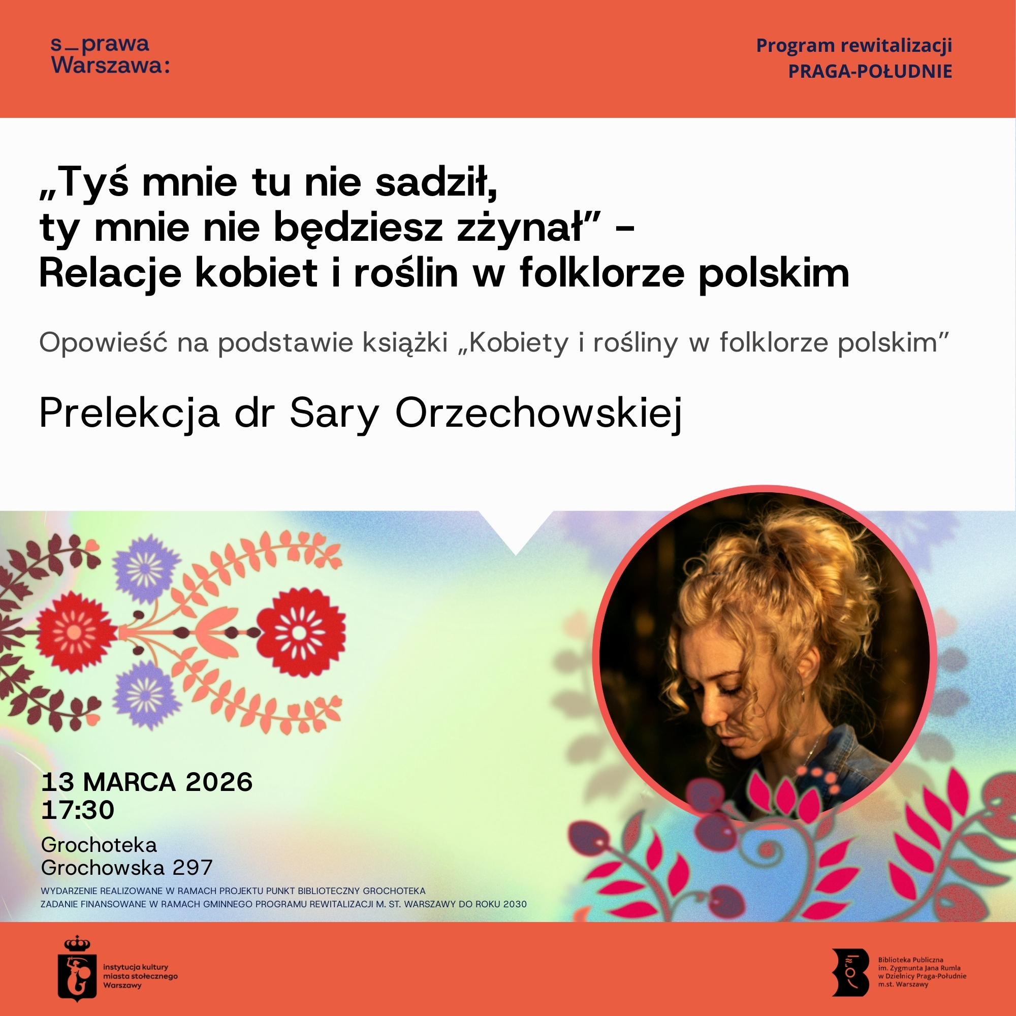 Serdecznie zapraszamy do Grochoteki na spotkanie z dr Sarą Orzechowską (Chwaściory – Fundacja Linnum) pt. “Tyś mnie tu nie sadził, ty mnie nie będziesz zżynał. Relacje kobiet z roślinami w folklorze polskim”. Treść prelekcji opiera się na materiale badawczym zebranym przez autorkę podczas przygotowywania rozprawy doktorskiej. Praca ta zdobyła pierwszą nagrodę w konkursie „Polska wieś- dziedzictwo i przyszłość”, a w 2024 roku została opublikowana w formie książki. Jako etnobotaniczka i folklorystka, dr Orzechowska zaprezentuje interdyscyplinarne podejście łączące wiedzę biologiczną z antropologicznym spojrzeniem na dziedzictwo kulturowe. To wyjątkowa okazja, by odkryć dawną więź kobiet z naturą oraz zrozumieć, jak mocno losy ludzi i świata roślin są splecione w polskiej kulturze ludowej.